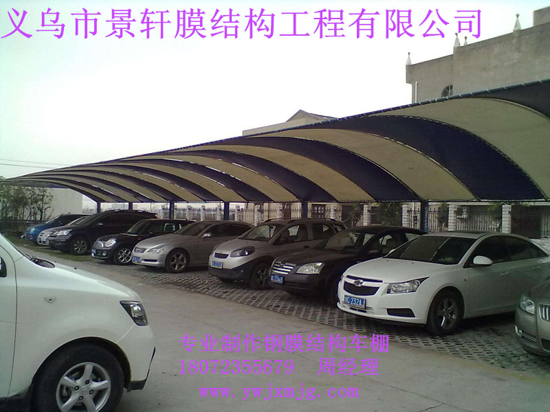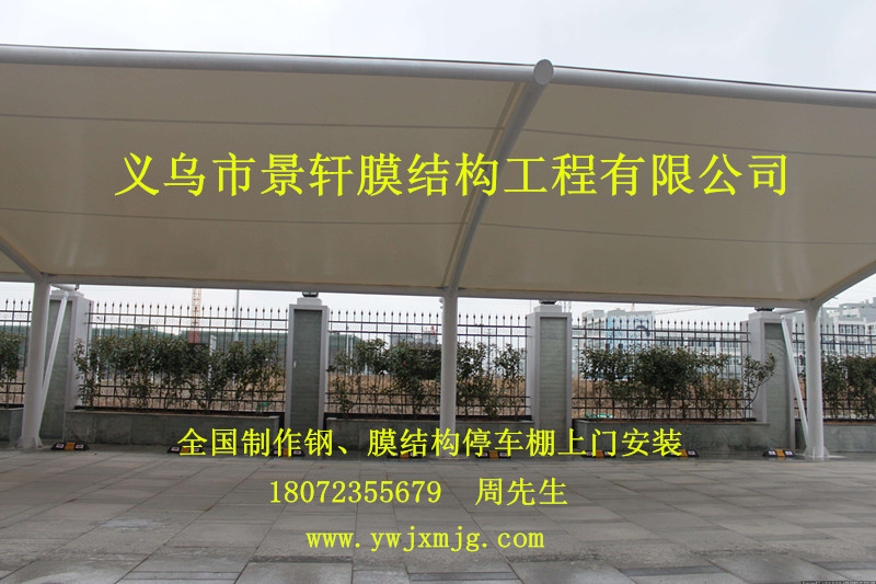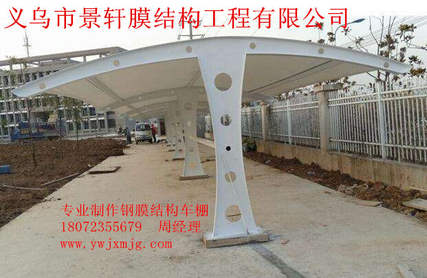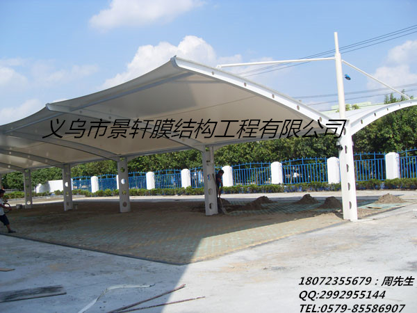 三 义乌市景轩膜结构工程有限公司,是一家从事膜结构研发、设计、剪裁、 制造、安装、生产和销售服务为一体的企业.本公司主要从事的产品有膜结构车棚、汽车停车棚、自行车棚、景观遮阳棚、张拉膜、收费站、加油站、体育场、索膜、景观膜 等膜结构工程。公司拥有现代化生产制造基地并全套引进国际先进的膜材裁剪及焊接生产线,膜结构车棚膜材年加工能力10万平方米,产品制造严格按照国际ISO9001质量体系标准控制。