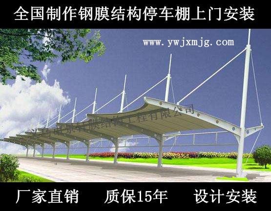在安装膜结构车棚的时候应将预埋件用混凝土浇筑后,用螺栓与立连接,抗风系数高,增加膜结构车棚整体牢固程度,做好膜结构车棚牢固工作能抵抗12级以上台风来袭。现今社会小区的每一个角落都可以看到自行车车棚,膜结构车棚的身影,我国又是汽车工业高速发展,城市的汽车拥有量成倍上升,膜结构车棚将会成为人们生活当中所不可缺乏的一道景观风景线,这也是膜结构车棚在当今社会发展逐渐迅猛的原因所在,更多膜结构车棚知识,详询:0579-85586907,公司网站: / www.ywjxmjg.com