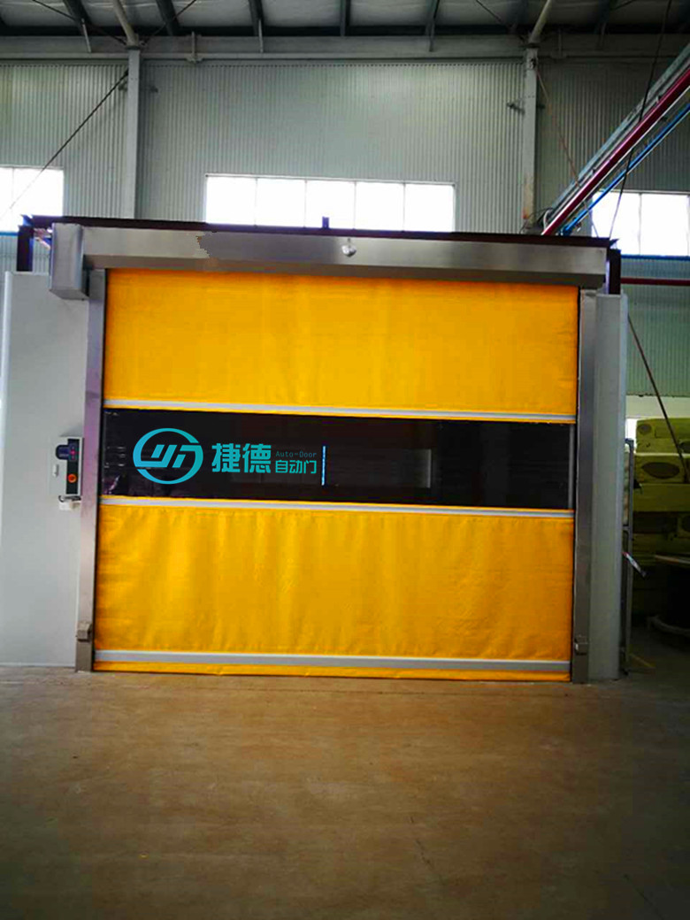 快速门。工业快速卷帘门是指每秒运行速度超过0.6米的门,是快速升降的无障碍隔离门,主要功能是保温、保湿、防尘、防虫、隔音等,使车间保持恒温、恒湿、洁净的工作环境。