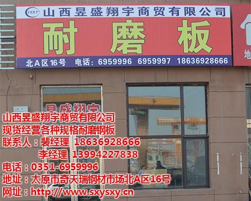 山西昱盛翔宇商贸有限公司专业经销各种型号的耐磨板,公司座落于太原最/大的钢材市场--奇天瑞钢材市场位于万柏林区东社高速口,交通便利,运输方便。