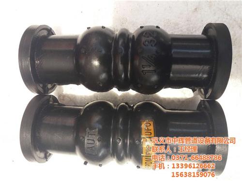 双球体可曲挠橡胶接头的中间层采用优质尼龙莲子布和硬钢丝焊接组成的橡胶接头骨架层,具有很好的强度,保证橡胶接头在使用过程中不会被拉伸撕裂,压缩变形后还能横好的恢复原状,尼龙帘子布的高韧性是橡胶接头韧性的保障,而钢丝圈加强层则是橡胶接头强度的保证。在双球体可曲挠橡胶接头的脖颈部分我厂根据用户反映的使用情况特殊设计具有专利的加强项圈,具有很好的耐压性,保证橡胶接头的最薄弱部分的安全,特别是在2.0MPa以上高压中使用时,必须加装次装置。使整个双球体可曲挠橡胶接头的自身结合完美没有薄弱环节。