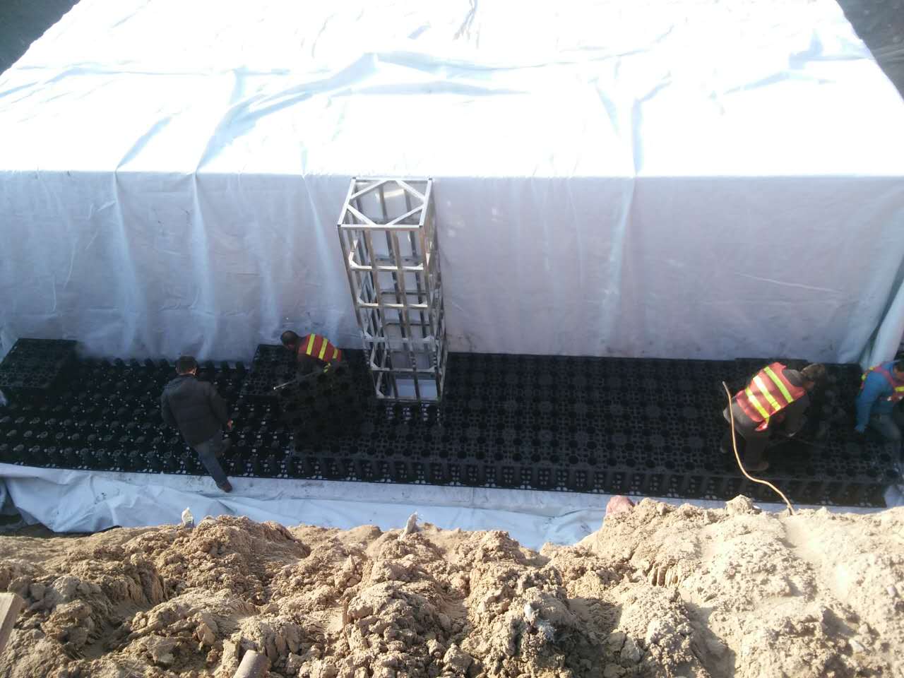3.加强型PP蓄水模块可安装在行车区域,如车道和停车场,并在行车区域覆盖更大的深度.合理的将模块安装在通车的路面下必须是在专业的工程师设计要求下进行。
