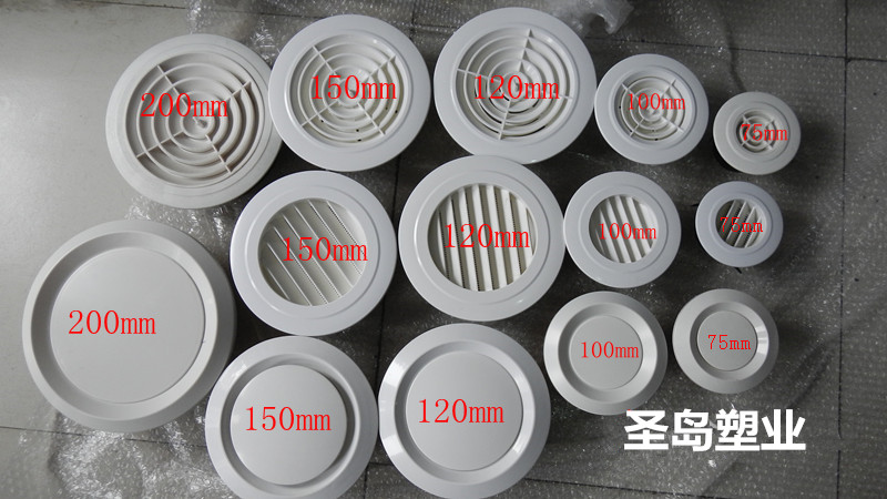 功能:用于室内新风系统末端送风和排风,可根据需要随意调节风量.是理想的室内通风系统末端产品. 通风口与圆形风管对接.