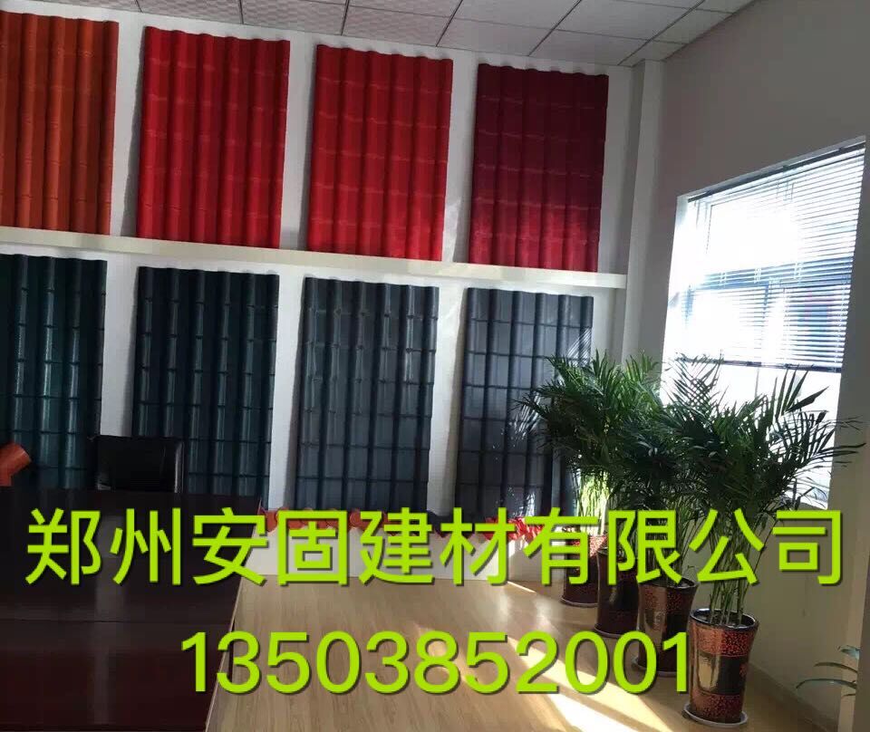 安固合成树脂瓦特点:1.合成树脂瓦具有卓越的自防水性能。合成树脂瓦所选用的高耐候树脂本身质密且不吸水,不存在微孔渗水的问题。防腐瓦单张面积大,屋面接缝少,且搭接处结合严密,与传统小块板相比防水性能更加突出。2.合成树脂瓦的体积稳定。安固合成树脂瓦的膨胀系数为4.93×10 ̄5mm/mm℃,及时温度变化很大,板的伸缩也能被自身消化,确保板的几何尺寸不变。3.合成树脂瓦耐火性强。合成树脂瓦主体材料聚氯乙烯树脂自身属于难燃材料,经国家防火部门检测防火性能达到B1级。4.合成树脂瓦绝缘性能好。合成树脂瓦是绝缘材料,遇到意外放电也会完好无损。5.合成树脂瓦质轻。安固合成树脂瓦属于轻体结构材料,重量(5.0±0.1)kg/㎡,有效的减轻了建筑物的负荷,提高了安全性,非常适宜于旧楼的改造。同时便于搬运和施工,节省运费,降低施工成本。6.合成树脂瓦具有自清洁性能。合成树脂瓦本身光滑致密,不易吸附灰尘,一经雨水冲刷便洁净如新,不会出现积垢现象。7.合成树脂瓦安装便捷。合成树脂瓦单张面积大,铺装效率高,工序简单,配套产品齐全,安装快捷省工省时。