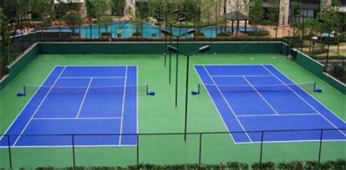 按照现行的网球运动场地设施标准准确测量出工艺线的位置,然后用聚氨酯漆喷刷