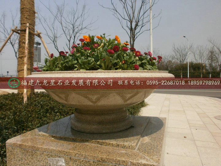 石雕花盆是用于园林景观和花园别墅中配套使用的盆状器物,其中以石材类的花盆有艺术效果。主要应用在园林绿化、景观绿化、私家园林、小区绿化、由于使用天然饰面石材装饰的部位不同,所以选用的石材类型也不同。用于室外建筑物装饰时,需经受长期风吹雨淋日晒,花岗石因为不含有碳酸盐,吸水率小,抗风化能力强,选用各种类型的花岗石石材;用于厅堂装饰的石材,要求其物理化学性能稳定,机械强度高,应花岗石类石材;用于墙裙及家居卧室的装饰,机械强度稍差,用具有美丽图案的大理石。