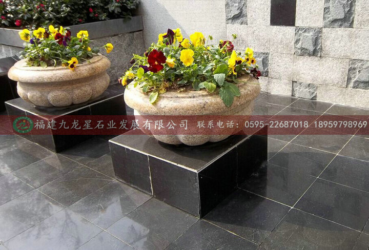 精品石雕花盆 黄金麻石材花钵 欧式花钵 园林庭院摆件