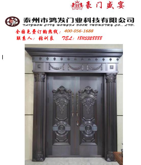 江苏鸿发门业是一个专门从事生产:铜门、铸铝防爆门、铝合金铜门、不锈钢铜门、不锈钢门、全自动旋转门、智能自行门、铜扶手、金属工艺品及各种大型金属门窗装饰工程系列的企业,是集研发、设计、制造、销售、安装、售后服务于一体的现代化综合性企业,属该行业领导企业。