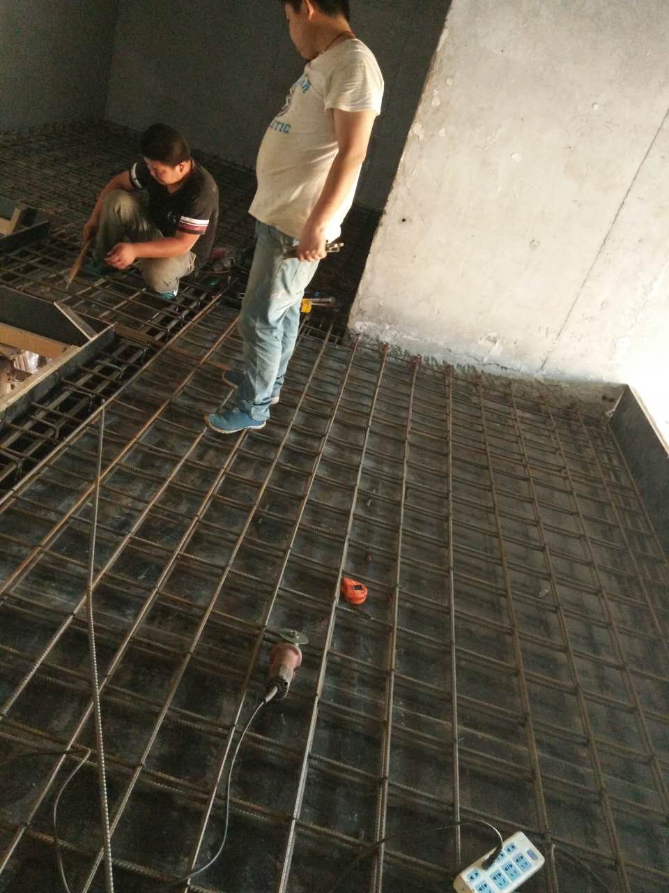 请多咨询一下专家,不要拿自己的安全开玩笑,切记,“一分价钱一分货”、“买家没有卖家精”,看是占了便宜,其实吃了亏。做楼板前一定要考虑好楼上的电源怎么摆放,新作楼板上的灯放在什么位置。然后将线管预先铺设在两层钢筋的中间,把线管埋在洪凝土中。一般不建议做好楼板后再凿开楼板埋线管,这样多多少少会影响楼板的质量。而且多了一笔开线槽的钱。 要根据现场的情况,必要时需要增加大梁我们会尽量满足业主的美观的要求,但有时必须的结构是一定要加的,就算不另外收取费用,我们该做的还是要做。 混凝土堆放到模板上以后,是非常不密实的,需要震动棒来振捣密实,否则会出现蜂窝麻面和空洞,大大降低混凝土的强度。由于很多施工队的实力及投入不够,就让人用铁锹及木棒来振捣,是不能保证质量的。