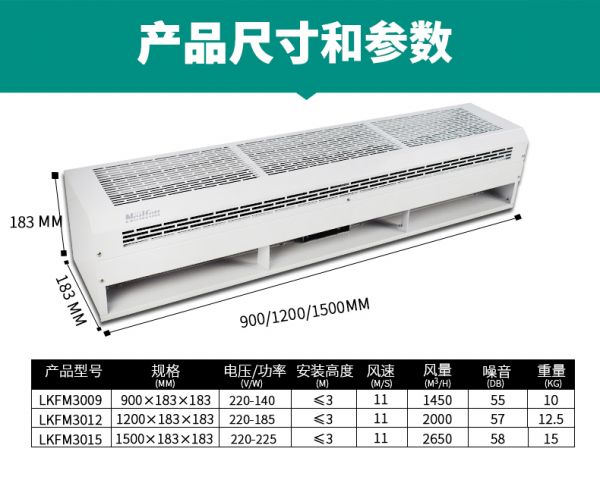 1、产品型号:(LKFM3009);电压:220V;电机功率:140W风口风速:11m/s;噪音:55dB;风量:1450m3/h。