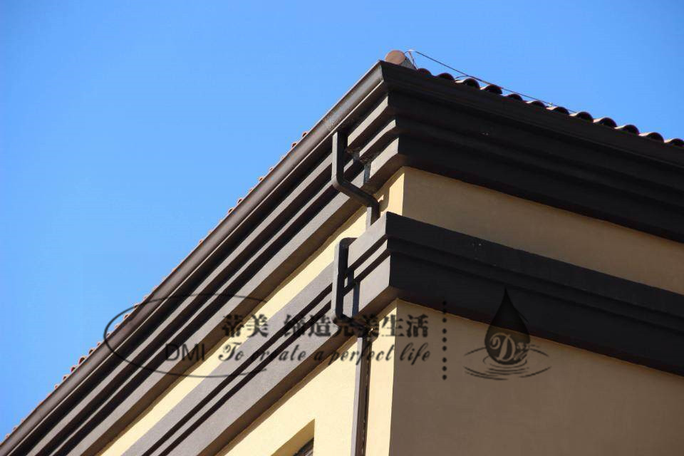 ◆漂亮的形状:公司彩铝落水系统外形提供了北美最流行的51/8英寸K型双曲线外观,和南加州西班牙式建筑协调使用的6.5英寸半圆(H)型两种外观檐沟设计,同时金属的质感给您的建筑立面带来朴实视觉感受。时尚与典雅皆宜,是欧美住宅的经典配置。