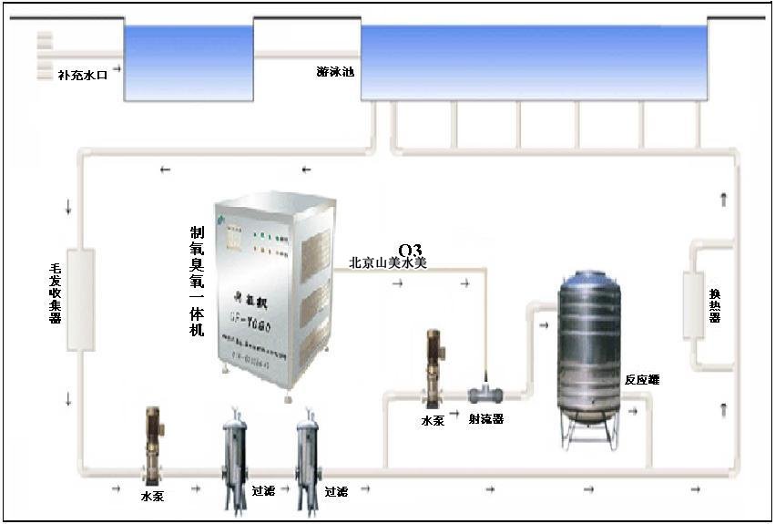 (5)泳池循环水经过滤后加臭氧消毒;