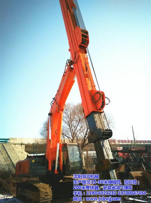挖掘机加长臂分为二段式、三段式、四段式,二段式主要适用于土砂、混凝土等建筑搬运、高速公路坡面修整及河道疏通清淤及建筑基础、河道、深沟等土石方挖掘作业等;三段式、四段式主要适用于高层建筑楼体的拆解等作业等。