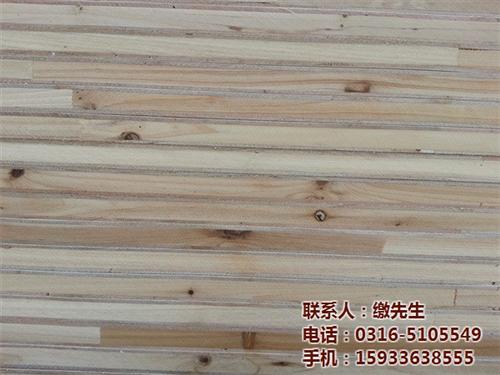 制造芯条的树种采用材质较软,木材结构均匀、变形小、干缩率小,而且木材弦向和径向干缩率差异较小的树种,易加工、芯条的尺寸、形状较规整,则成品板面平整性好,板材不易变形,重量较轻,有利于使用。