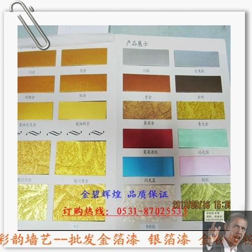金箔漆是由高分子乳液、纳米金属光材料、纳米助剂等优质原材料采用高科技生产技术合成的新产品,金箔漆的研发雏形来自于广泛应用的金箔和金粉,用于代替传统的金属装饰和金箔装饰,更具有物美价廉,施工简便快捷,易于维修翻新等优点。