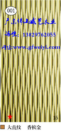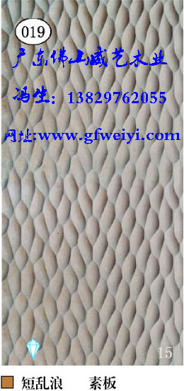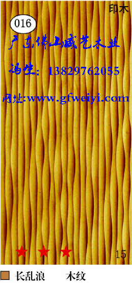 波浪板,通花板,浮雕板,木皮编织板是源自欧洲的一种新型时尚艺术环保室内装饰板材,是大理石、文化石、天然木皮、贴面板等传统装饰板材料的更新换代产品。威艺立体波浪板是以优质中纤板(根据客户要求选择高中纤板、高密度板、拼板及各类实木板等)为基材,经电脑雕刻出各种花纹,表面采用高超烤漆、贴金银箔等工艺精工制造,能塑造不同的时尚装饰效果。威艺以其品种齐全、线型优美、立体感强、光彩永恒、防潮、防变形、使用方便等性能特点,广泛应用于各种住宅、别墅、酒店、会所、商场、写字楼等室内装饰工程之中,并可配套于门业家具,还可用作屏风隔断、壁画,更可取代传统的天花板,营造出高档优雅、个性别具、立体感极强的商住休闲空间。