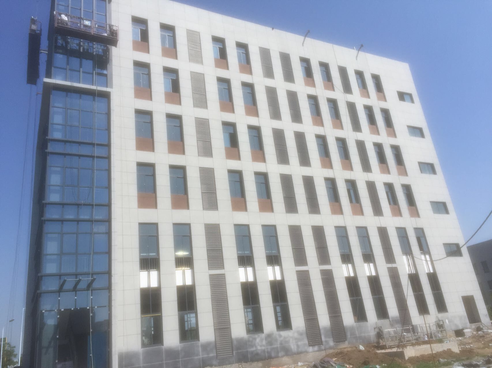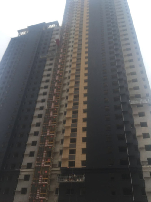 旧楼翻新工程,基层质量较差,增加用工量及工艺,采用人工铲除原有脱落的涂料,保证基层光洁,然后用水管喷枪清洗, 新墙体基层不需要此操作。
