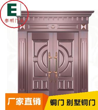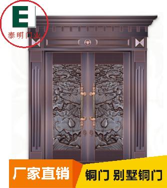 青岛泰明门业专业生产各种类型纯铜门仿铜门,铜门款式繁多,可以根据客户的要求非标定制,作为青岛本地铜门厂家泰明门业十分严格,不仅要保证外形新颖美观,同时更要对铜门质量严格把控。铜门产品防腐性能强,原材料采用99%洛阳紫铜,稳定性高,耐酸碱,即使风吹雨淋,雨水中酸性物质也不会对铜门的表面造成损害。