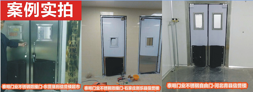 食品厂不锈钢自由门定制加工要求严格,青岛泰明门业15年专业定制不锈钢防撞自由门,作为省内较大的不锈钢防撞自由门生产厂家,门板正反两面全部采用304不锈钢或者201不锈钢板材制作,耐酸碱程度和含镍量都能满足食品行业卫生标准,中间夹层木材经过特殊处理,使门具有较强的防腐抗潮作用。控水间不锈钢自由门可满足任意清洁,而传统木质门,钢制门在这方面所具备的功能并不明显,故不可任意清洗。另外不锈钢防撞自动回位门相比传统的门,在厚度上要薄得多,在人员及货物周转进出过程中更加便捷。泰明门业不锈钢防撞门生产厂地在青岛,工期短,厂家直接供货于您,省去中间环节,为您赢得30%的中间商利润。根据您的需求为您专业量身定制,不锈钢防撞自由门产品质量有保障。完善的售后服务体系更是让您用的放心。