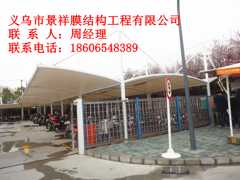 义乌市景祥膜结构工程有限公司,是一家专业从事膜结构研发、设计、剪裁、 制造、安装、生产和销售服务为一体的企业.本公司主要从事的产品有膜结构车棚、汽车停车棚、自行车棚、景观遮阳棚、张拉膜、收费站、加油站、体育场、索膜、景观膜 等膜结构工程。公司拥有现代化生产制造基地并全套引进国际先进的膜材裁剪及焊接生产线,膜结构车棚膜材年加工能力10万平方米,产品制造严格按照国际ISO9001质量体系标准控制。