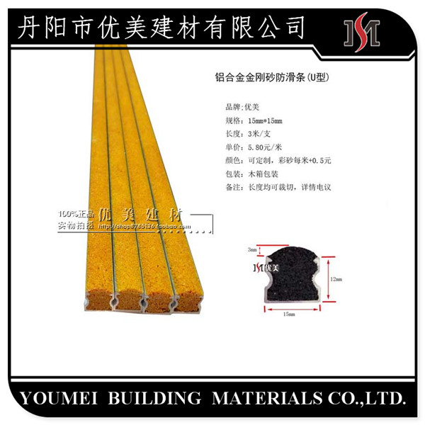 优美建材有限公司是一家从事防滑产品生产及应用的企业,公司业务涉及有楼梯踏步金刚砂防滑条,楼梯铝合金金刚砂防滑条,防滑贴及金刚砂瓷砖防滑条等产品的研发、生产、销售、技术咨询和服务业务。我司拥有先进的检测设备,拥有多年经验丰富的技术专家以及严谨的产品开发程序,致力于开发未来型产品,力争在国际市场上的竞争力.