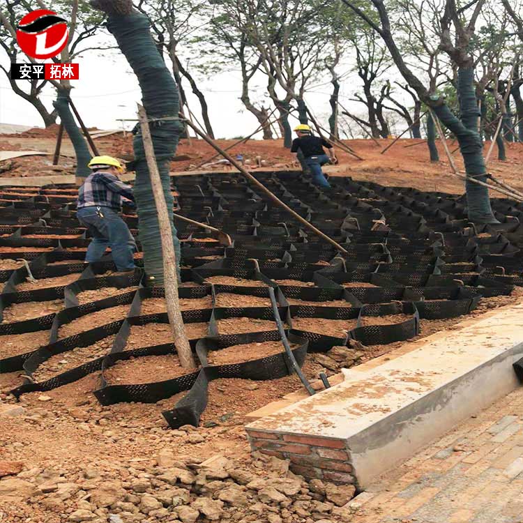 是由高强度的HDPE宽带,经过强力焊接而形成的一片网状格室结构。它伸缩自如,运输时可缩叠起来,使用时张开并充填土石、或混凝土料,构成具有强大侧向限制和大刚度的结构体。它可用来做为垫层,处理软弱地基增大的承载能力,也可铺设在坡面上构成坡面防护结构,还可以用来建造支挡结构等。施工方便快捷