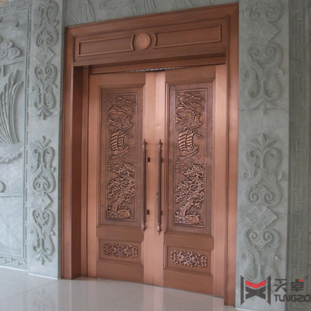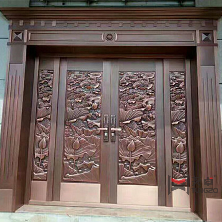 1、防锈:洛阳铜质100%含铜量防锈性能良好; 2、防腐:镀锌钢板结构,铜板防腐性提高5倍而且坚固耐用平整度高; 3、防晒:德国氧化处理剂加工工艺,光泽鲜亮如新不褪色;4、防火:航空铝蜂窝填充,加强隔音,防潮防火效果好;5、防裂:方钢焊接框架,满焊处理,外扣铜板,型材焊接。