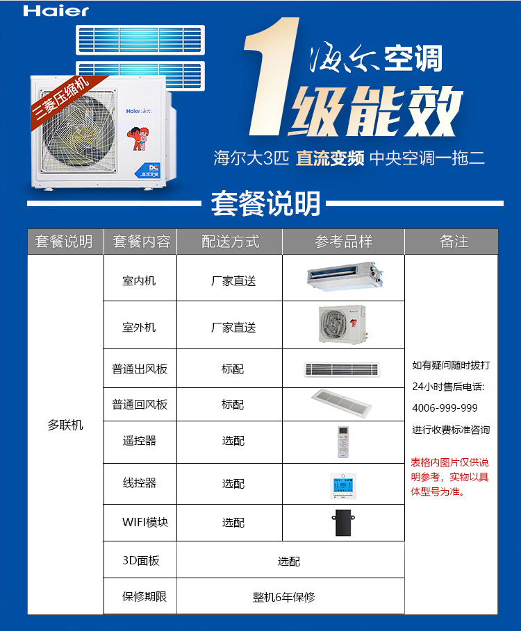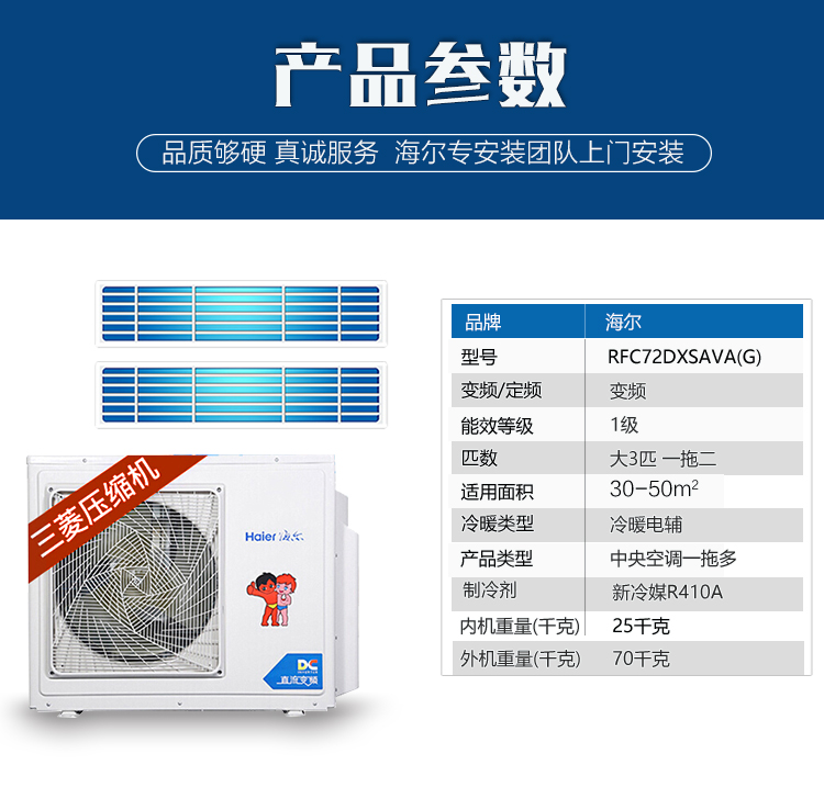 (Haier) 3匹一拖二直流变频风管机 中央空调家用