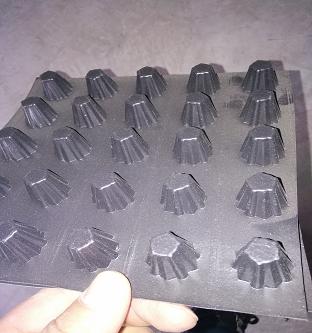 绿成排水板生产工艺上的紧密配置,凸台结构上设计合理,化学原料成分的调配,使排水板具有柔软性,又具有硬度,使绿成排水板强度有保障,柔软适度便易装卸、运输、铺设、施工。