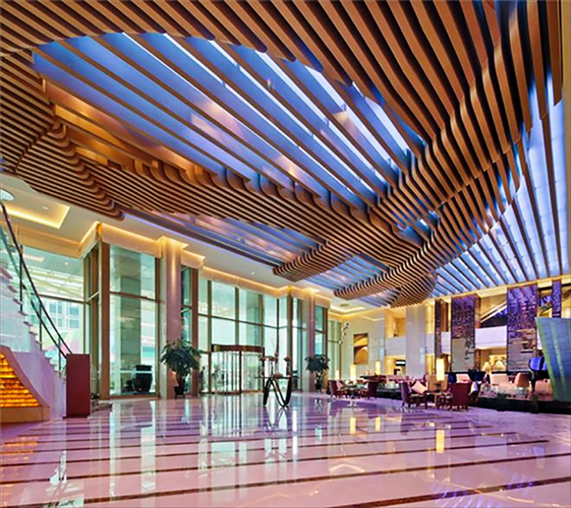 而铝单板是指厚度大于1.2mm的铝板。从数学角度来说,铝单板吊顶是铝天花吊顶的元素,铝天花吊顶是个调集,这个调集中的元素除了铝单板之外还有铝扣板、铝方通、铝格栅、铝挂片。