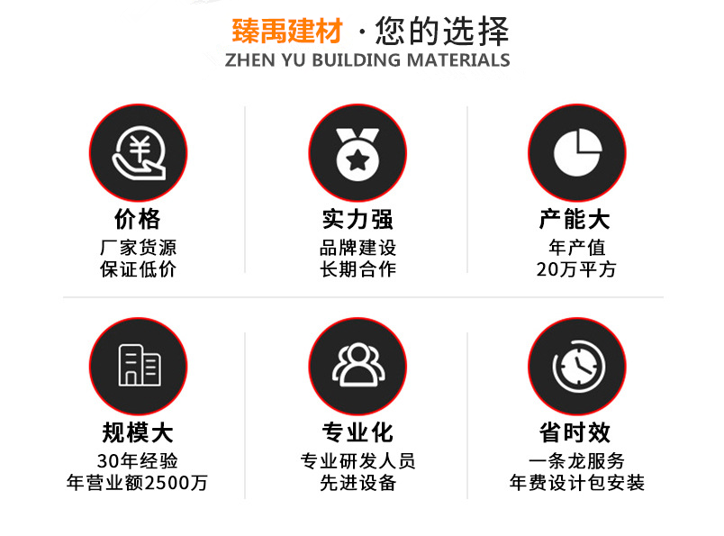 广州市臻禹金属建材有限公司生产厂家创建于2001年,本企业坐座落于亚洲经济活跃的我国珠江三角洲中心——广州。本企业现有职工200多人,资金雄厚;是一家集研制、生产、销售、装置和售后服务于一体的企业。公司已通过ISO9001:2000质量管理体系认证,并荣获《我国建筑行业知名品牌》、《优质产品》等荣誉,是我国工程建设协会在国内建筑装修范畴特别推荐使用的“绿色环保产品”。 多年来,公司一直致力于开拓、立异铝天花吊顶产品,以其精深的技艺,高的品质和诚笃的服务乞立于我国天花饰业的前列。作为金属铝天花吊顶的龙头企业和知名品牌,凭着多年的执着追求,在国内外上百个重大经典装修工程及新五金加工工业中获得硕大的成功,臻禹建材现有臻禹,纳美品牌等都是注册商标,近年来发扬世界工艺精华,飞速发展,生产的“臻禹”牌天花,多达数十个系列和上百个种类。其间专利技术的运用,与超绝的天花装修工艺结合,涉及金属天花装修的所有范畴,尽显辉煌。