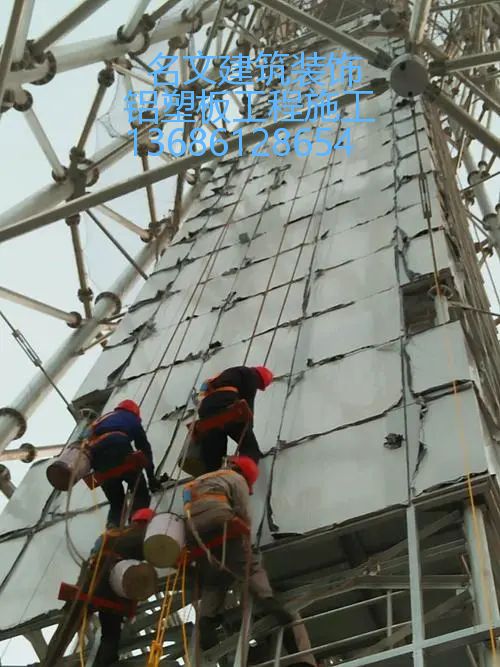 随便在哪个城市中逛上一圈,都不难发现到处都是铝塑板应用的工程。小小的门面装修工程,到大型高层建筑上都应用到了铝塑板。因此,铝塑板的施工工艺至关重要,这将影响到一个城市的整体美感。铝塑板施工工艺如下: