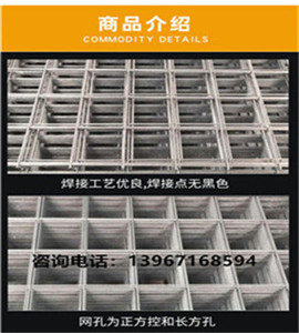 产品特点:钢筋网片是纵向钢筋和横向钢筋分别以一定的间距排列且互成直角、全部交叉点均焊接在一起的网片,可以显著的提高钢筋工程质量,明显提高施工速度、增强混凝土抗裂能力等等优点,是建筑工程中常用的建材之一