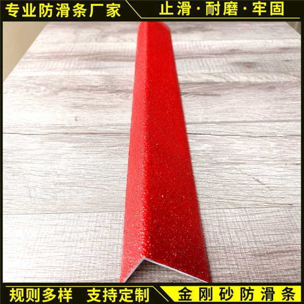 防滑条直接嵌进去就很牢固。构成:由坚硬耐用的金刚砂颗粒制成。此种颗粒被植入的塑料薄膜上,它是迄今为止所知的硬的。胶带使用时具有压力粘合性,能够快速粘合,能极好地附着在许多不易附着的表面。器械:滑板、滑板车、跑步机、健身器、车床及印刷机踏脚板、公共汽车上的通道、梯级;场所幼儿园、学校、泳池、敬老院、车站、地铁火车站台、码头、酒店、厨房、卫生间、运动场、电梯入口、人行斜坡、货场、工作区和甲板等场所。还可用于康乐游览车、轮船、拖车、卡车、飞机悬梯、大型或小型动力设备上。采用高强度铝合金型材作为框架,在铝合金凹槽内填充金刚砂。其颜色可做成多种多样,产品牢固、精美。金刚砂防滑产品主要有金刚砂