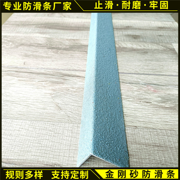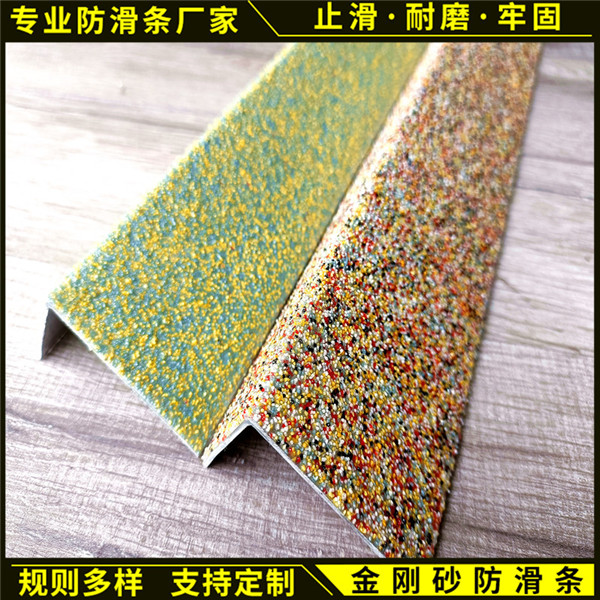 进而延长了防滑条的使用寿命。采用铝合金型材作为框架,在铝合金凹槽内填充金刚砂。其颜色可做成多种多样,产品牢固、精美。金刚砂防滑条分为三种。一种是包角的,也就是L型的,窄的那边大概在2公分宽左右,可以保护到楼梯的侧面,还有一种是直线式的没有包角。这两种都是用螺丝固定的。安装的位子一般一边直接抵住踏步边,防滑条宽度为4-6公分不等。而第三种是防滑嵌条,这种只需要开两条2MM左右的槽根据选的防滑条宽度开槽),槽口要开的很整齐,槽口底部嵌入高标号混凝土,