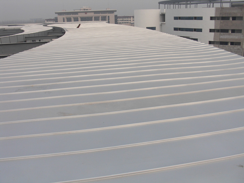 3、现场的滚轧成型设备可以提供长达100米以上任何尺寸的屋面板件,这就使建筑物屋面从屋脊至屋檐由一件材料构成,中间没有任何连接。