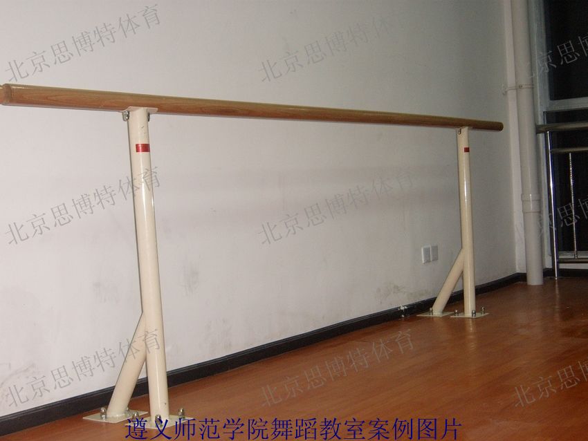 产品介绍:把杆为直径55毫米优质水曲柳,内衬直径22毫米弹簧钢;具有安全、美观、弹性好等特点。把杆可分为1.5米、2米、2.5米、3米、3.5米、4米等标准尺寸(如需特殊尺寸的把杆需提前订制);固定底座采用二寸钢管喷塑处理,表面颜色为珍珠白色,安装高度可任意选择高度,(一般选择高度在80cm-110cm之间)