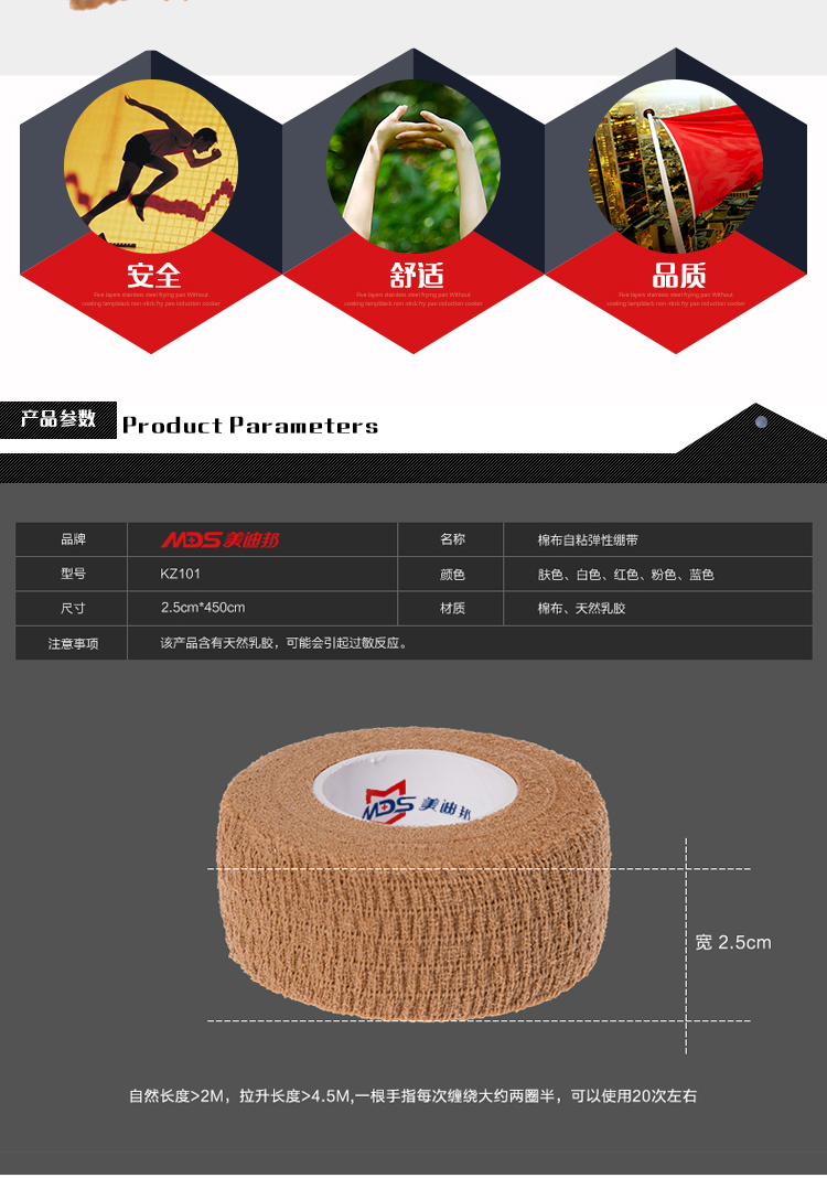 苏州美迪斯医疗运动用品股份有限公司,以2001年2月成立,是一家高新技术企业,公司生产研发销售自粘弹力绷带、护指绷带、肌内效贴、运动胶带、弹力面料等。公司品牌有“嘉迪安”“美迪邦”“MDS”等多个品牌,产品销售全球,出口比例90%,国内市场占10%。公司实力雄厚,重信用、守合同、保证产品质量,以多品种经营特色和薄利多销的原则,赢得了广大客户的信任,公司与多家零售商和代理商建立了长期稳定的合作关系。