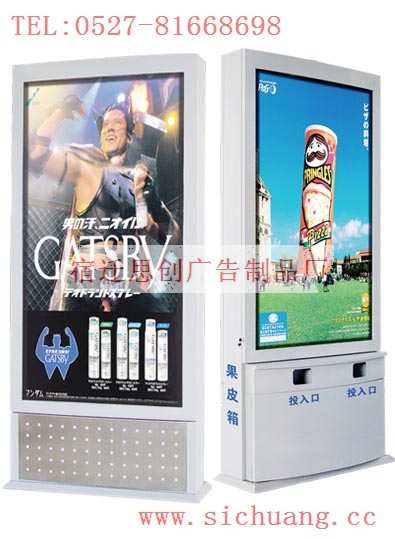 江苏省宿迁市思创广告制品厂,专业制作广告灯箱、滚动灯箱、环卫垃圾箱、灭蚊灯箱、ATM银行防护罩、滚动阅报栏、公交车站台等等;本厂生产规模强大信誉好,在国内外有很高的质量评价;本厂现着力开发高端户外路牌广告垃圾箱、广告垃圾箱、灭蚊灯箱模具化生产制作;我们为您提供最好的产品质量、最好的服务质量。