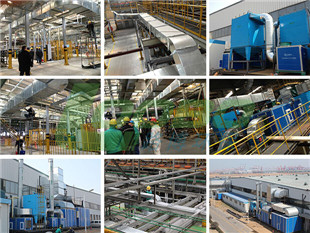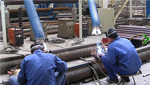 采取负压吸收方式,焊接烟尘通过吸气臂、管路变径等,最后经过风机高空排放。