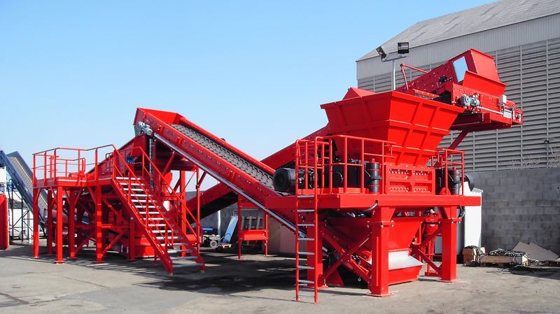 旋转剪切机是一种慢速运转的高扭矩双轴破碎机。该机器适用于对笨重材料(例如生活垃圾、工业垃圾和大件垃圾)或弹性物料(例如轮胎、电缆、薄膜、纸类、织物)进行破碎。它也会减小大体积的物料以及单件太重的部件。旋转剪切机从而可靠地达到很高的破碎比。