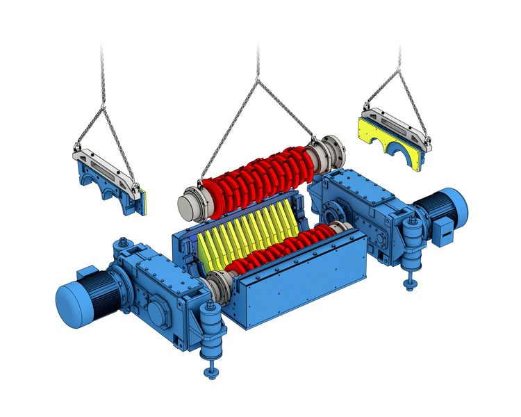 在坚固的外壳内有两个对转的转子轴,用于收入进料。每个轴配有一排精密加工的切削工具,像剪刀一样相互啮合。各个工具的尖端均装有抓钩,可确保快速、可靠地供料。安装在轴底侧的刮除器可避免旋转运动的切削工具上粘附材料。***终产品的尺寸取决于所选择的切割刀宽度。