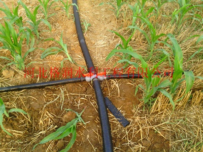 2、首端与水泵输出端相接(用金属卡固紧),此处可使用快速接头,也可使用与微喷带直径相应的金属管或PVC塑料管,并连接一个阀门;
