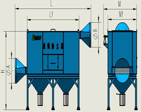 多滤筒除尘器为分体柜式机体,大风量除尘器,由于风机电机外形较大,不再适合与除尘器一体化设计,所以该系列除尘器采用分体设计。单独的风机电机隔音箱体及消音器,使大风量风机噪音降到最低。由过滤柜、控制柜、脉冲反吹装置等部分组成。内设高精度阻燃滤筒过滤单元,专用于整个车间多个焊接工位产生烟尘的收集净化。在高效环保专用离心风机负压吸入的作用下,切割烟尘通过风管收集进入过滤器,经预过滤分离及滤筒充分过滤,净化后的空气直接进入室内循环。