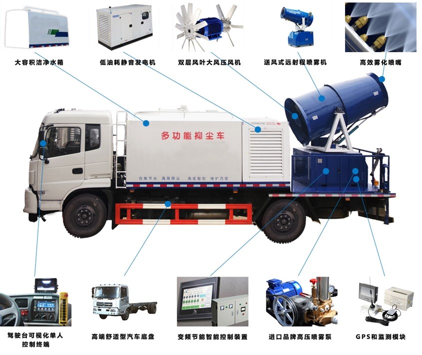 抑尘车是市场上一款新型的环保,农业的专用车辆,不光适用于除尘降尘,驱散雾霾,还可以用于城市街道、车站码头、学校机场、公共场所、垃圾场地,卫生防疫等喷药杀菌消毒,除尘降温;城市园林绿化、 防风防沙林带、农田林网、公路绿化带、花带路树、草原牧场等喷药防治病虫害。