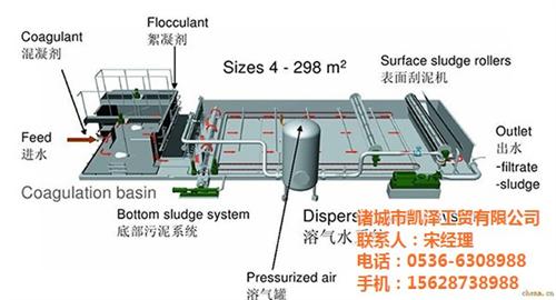2、工艺过程及设备构造简单,便于使用、维护。 3、能消除污泥膨胀。 4、气浮时向水中曝气,对去除水中的表面活性剂及臭味有明显的效果,同时由于曝气增加了水中的溶解氧,为后续处理提供了有利条件。 5、对低温、低浊、含藻类多的水源,采用气浮法可取得好的效果。 6、微气泡与悬浮颗粒的高效吸附,提高了SS的去除效果。 7、能有效去除污水中油脂、胶状物和悬浮颗粒及纤维,降低污水中COD,BOD,SS等排污负荷,同时可明显改变水质颜色。
