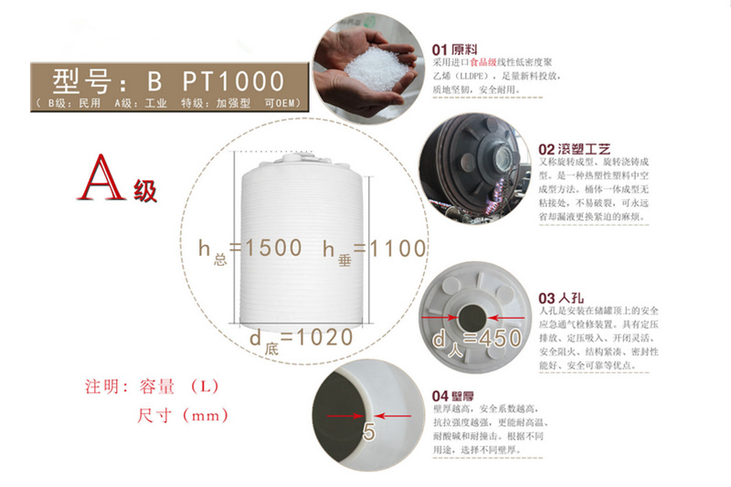 第四代纯水PE水箱/水塔,选用韩国乐天公司进口优质食品级LLDPE原料,首创“梯形抗压”设计和升级“缠绕加强筋”技术:专业品质、环保卫生、安全耐用!