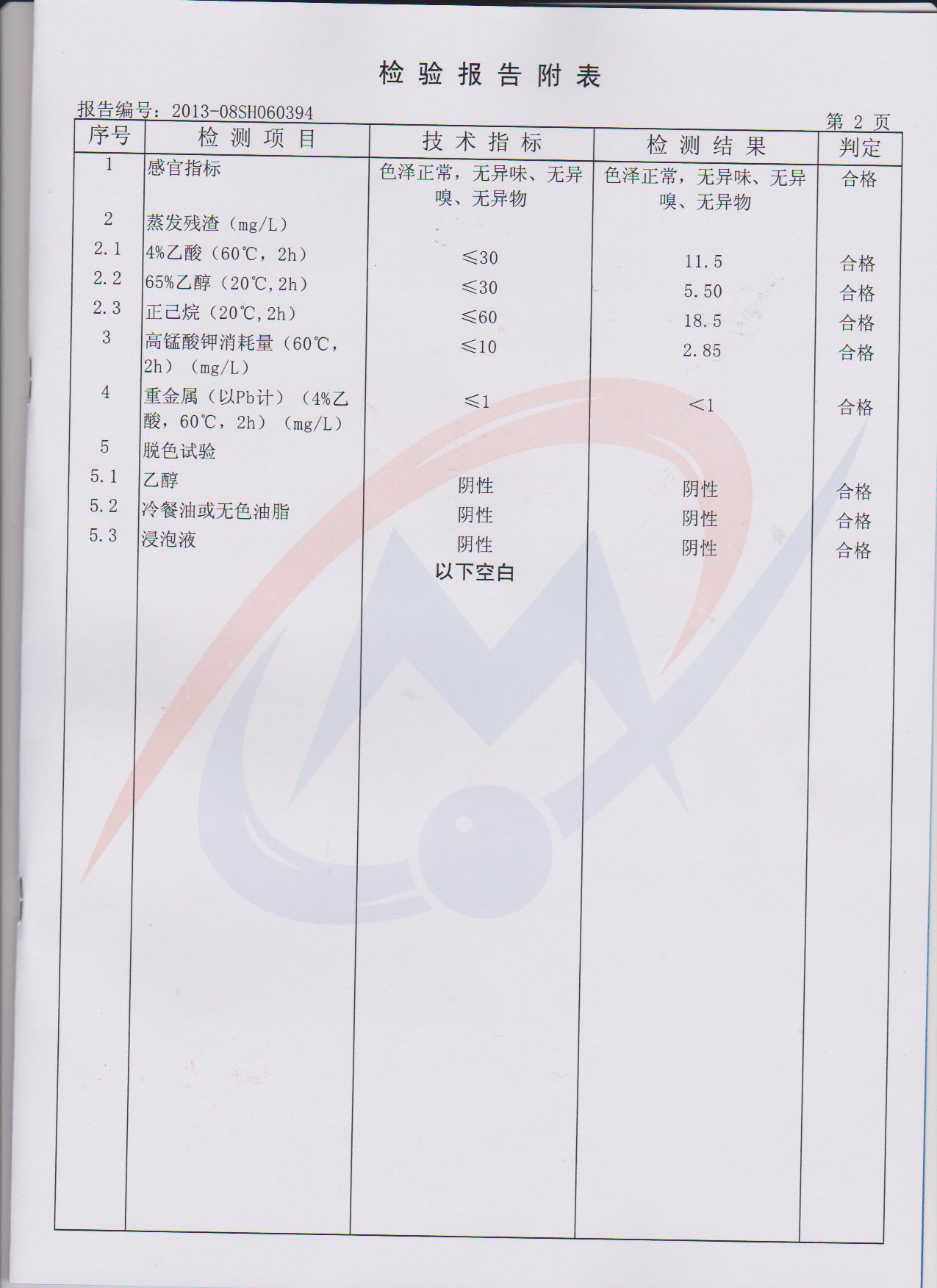 2.所耐温度最高不超过60℃,耐冷冻度不得低于-20℃。