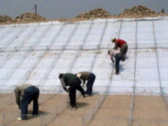 主动防护系统:采用高强热镀锌钢丝绳、钢丝网、不低于AB级的防腐处理,其防护寿命根据环境条件的不同一般可达30-50年。主要对边坡失稳潜在扩离落石危险的坡面进行防治,以纵横交错的Φ16支撑钢绳,按坡形(4.5X4.5m或者4.8X4.8m)方形模式布置成网柜,并与4X4m的主动网用缝合绳进行预张拉,使该系统对坡面施以一定的方向预紧压力,从而提高危岩石的稳定性,阻止落石的生,同时该系统不会影响地下水的正常流动排泄,并给边坡的生态治理提供了先决条件。