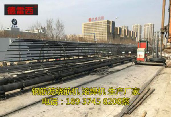 全自动钢筋笼成型机可自动一次性加工成型长度为12-27米钢筋笼。 845685965 根据施工要求,钢筋笼的主筋通过人工穿过固定旋转盘及移动旋转盘转动把绕筋缠绕在主筋上(移动盘是一遍旋转一边后移),同时进行焊接,从而形成钢筋笼。该设备采用可编程控制器进行动作控制,伺服动力系统为整机提供动力,设有液压辅助回转支撑机构和全自动焊枪,根据程序指令焊接,能够实现全自动焊接。